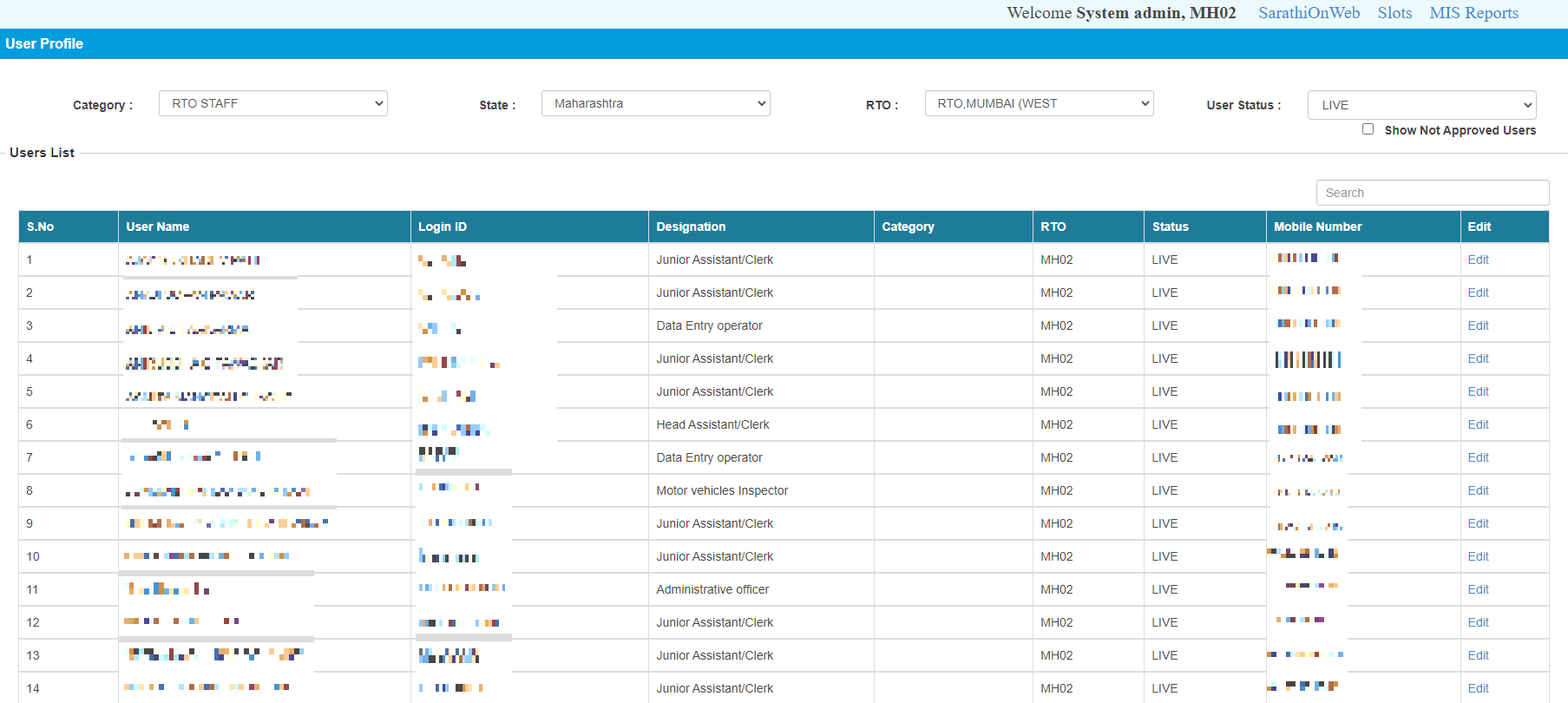 3) Access to government employee list: The administrator had unrestricted access over the Personal Information of all the government staff working at RTO’s accross India.